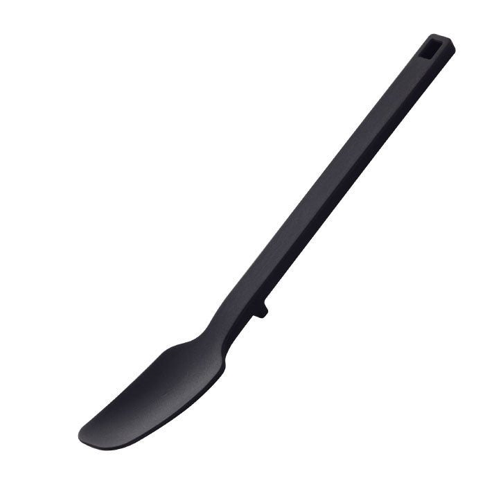 先端が浮くので直置きにならずに清潔。シリコーン製で器などを傷つけません。瓶底のジャムやペースト状の食べ物が最後まできれいにかき取れます。ヘラ形状なので色々なシーンで大活躍。レトルトパウチの中身の取り出しにも便利。