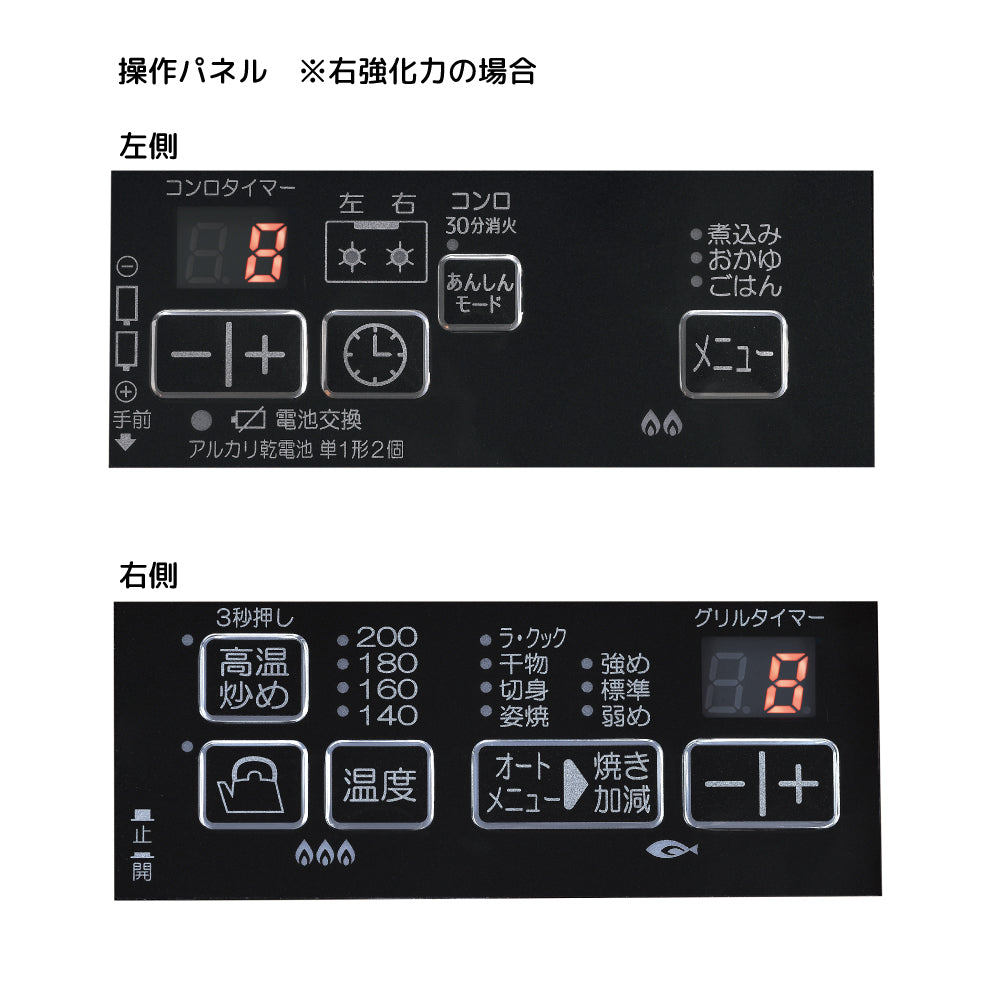安全性を考慮して、壁から離れている方を強火力バーナー(大バーナー)にすることをお勧めしています。